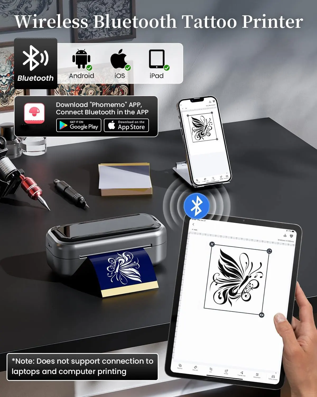 🎯 Ideal para tatuadores que buscan precisión, portabilidad y eficiencia, la impresora de plantillas TP31 es una solución innovadora que facilita la preparación de diseños personalizados en segundos. ¡Ahorra tiempo y mejora tu flujo de trabajo sin cables, sin tinta y sin complicaciones!