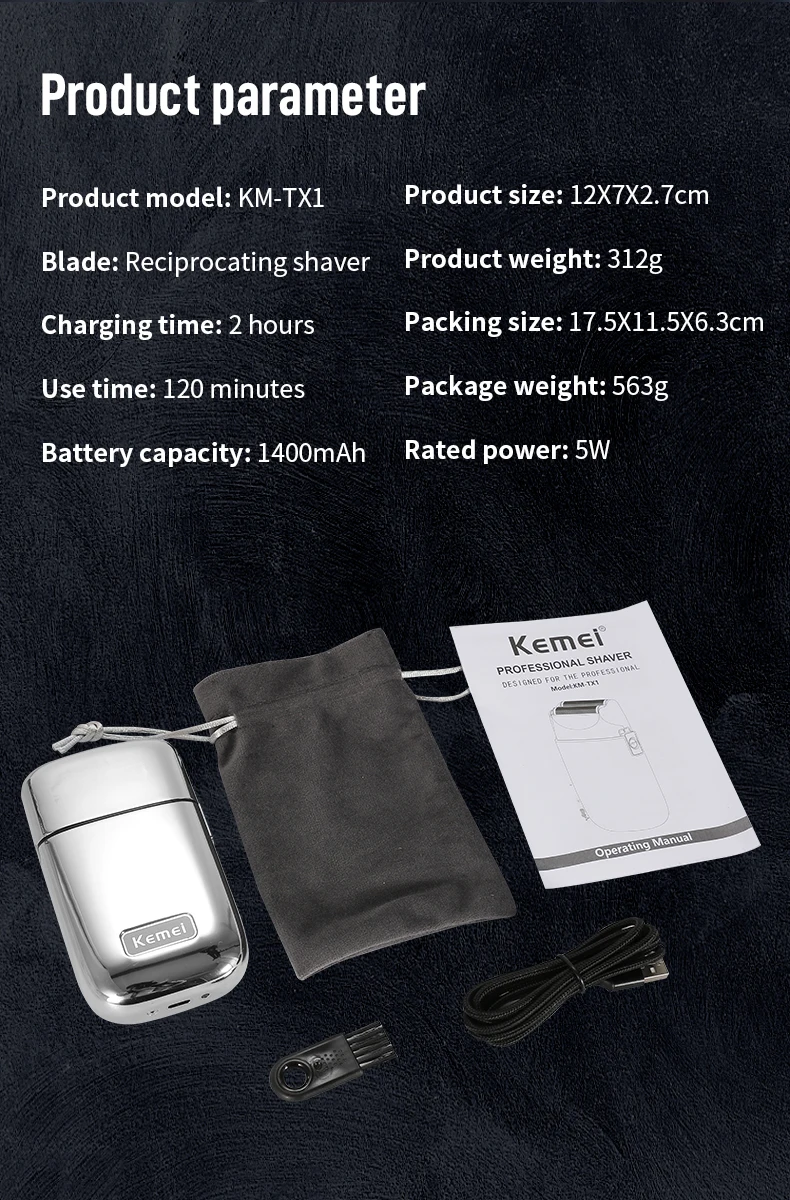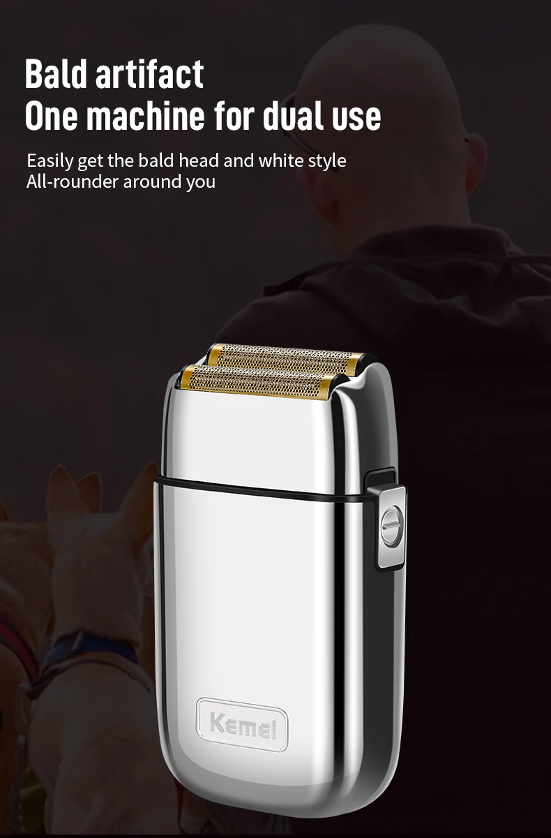Kemei Tx1-Afeitadora eléctrica profesional con carcasa de Metal recargable para hombres, maquinilla de afeitar eléctrica para Barba y pelo, máquina de afeitar calva, acabado que se desvanece